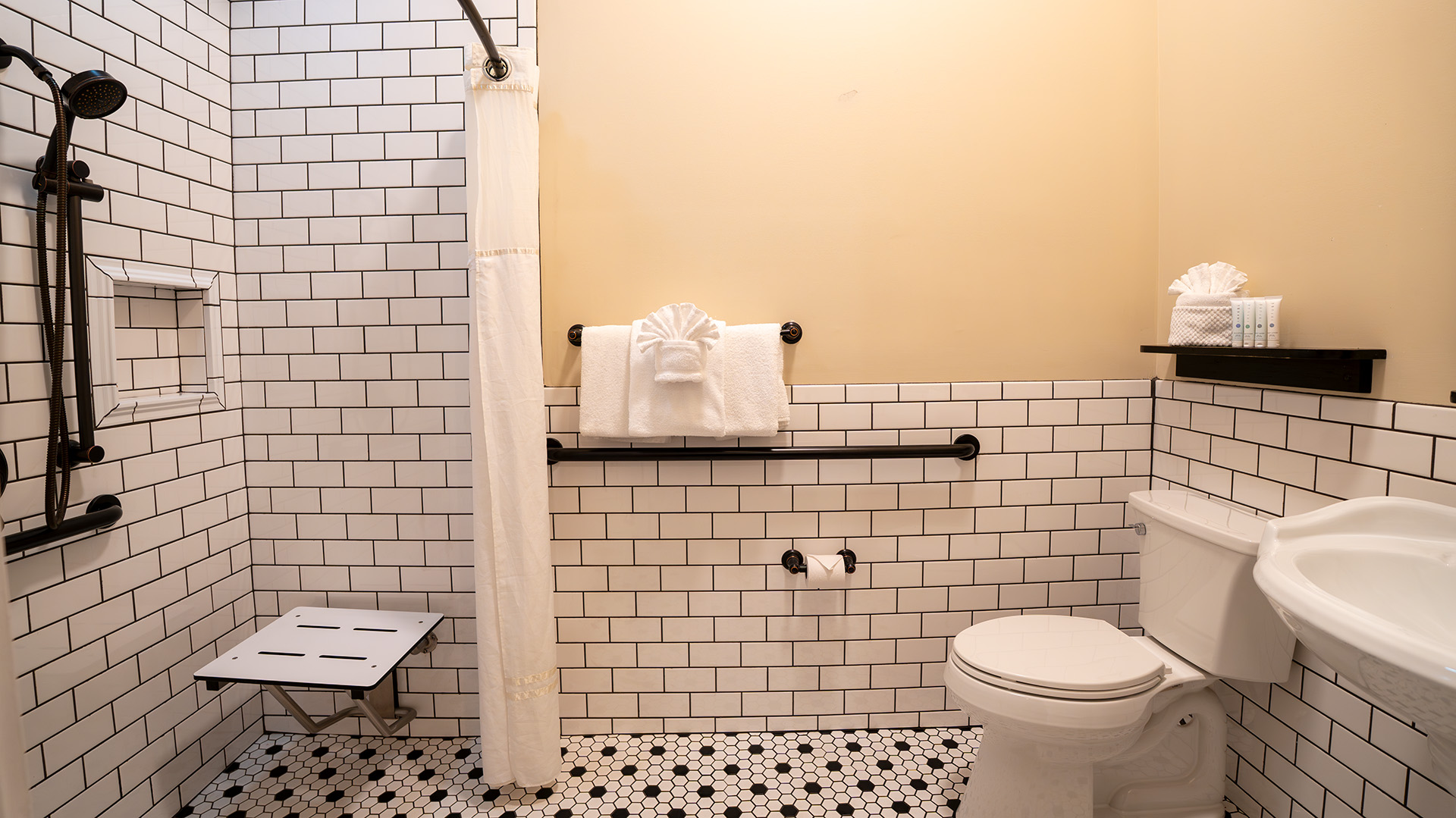 - Outside route entrance with curb ramp access to lobby and to ADA and hearing accessible rooms